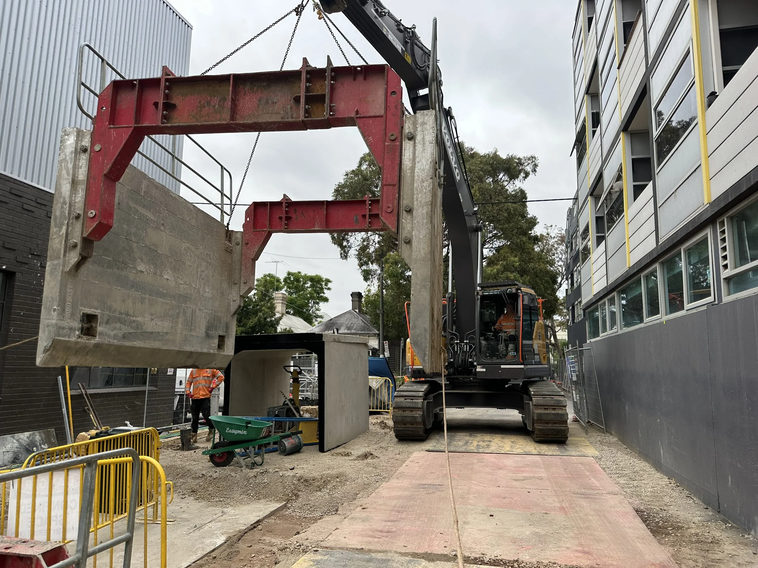 Launch and retrieval pits for microtunnelling